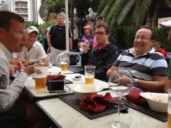 So next, to food; and we opt for a steak at the TipTop bar. I’d never heard of it before, but I’m told it’s the place to be – right on the pavement beside the circuit, opposite the Rolex boutique, on the exit of the casino square (which is remarkably round for a square?) It’s a great place – small and typically French, with a huge wooden bar dominating the interior, dark brown wooden round tables and chairs, red and white paper serviettes, a simple menu, lots of dusty bottles of wine knocking about, and it’s heaving, serving those in the know with good food, wine and beer (whilst the tourists queue for Café de Paris). For those in (or familiar with) York; TipTop is the like old Oscars (before it moved) whilst Café de Paris is Betty’s.