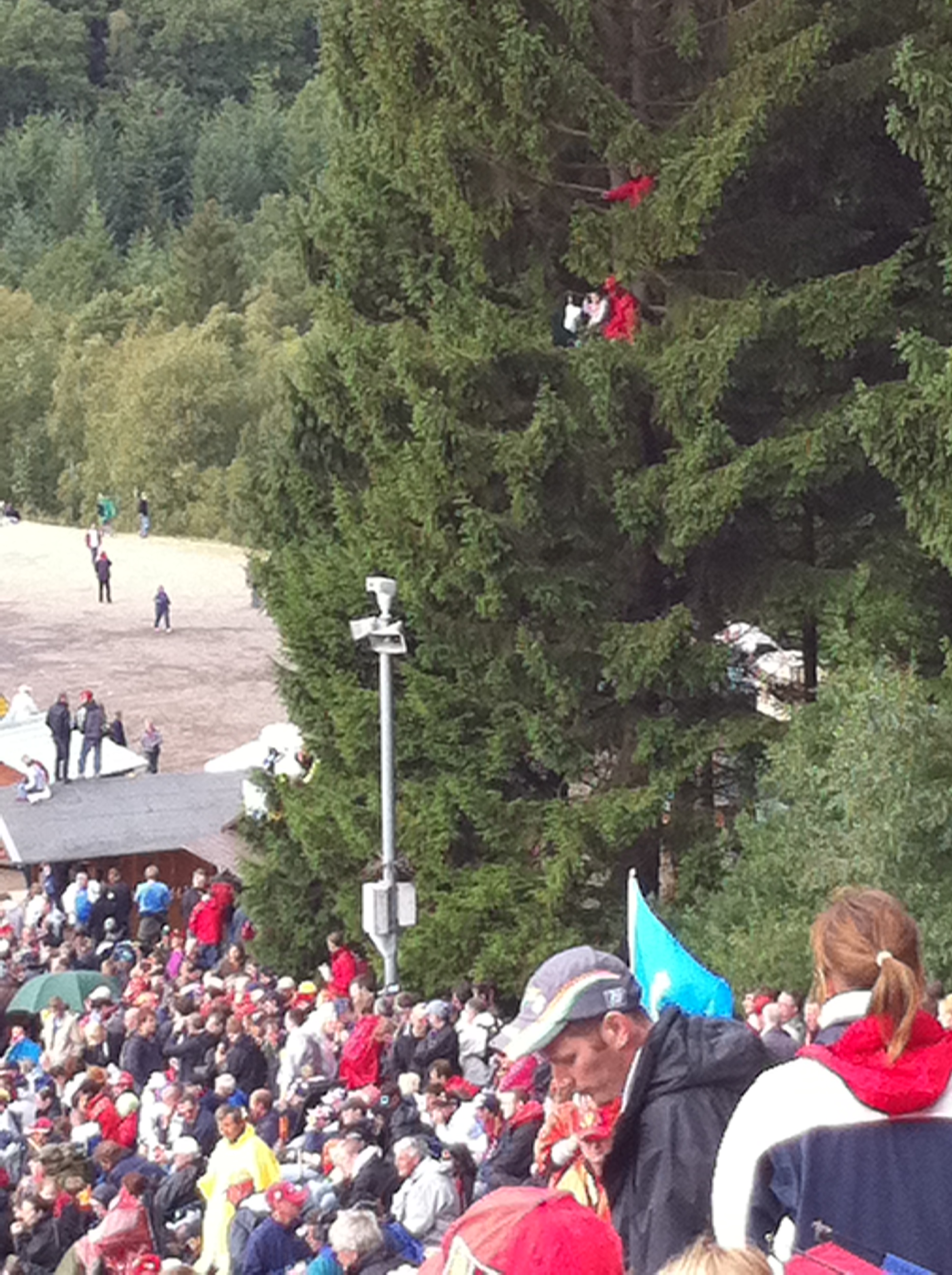 At a number of the races, the track winds through forests and / or is surrounded by trees. With hoards and hoards of people all looking to claim their spot, in some cases they climb the trees and watch from there. Others bring cool boxes strapped to barrel trolleys, deckchairs, sun shades, tents… you name it, they’ll have thought of it!
